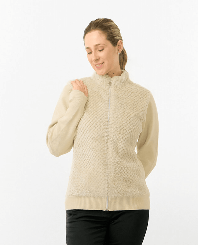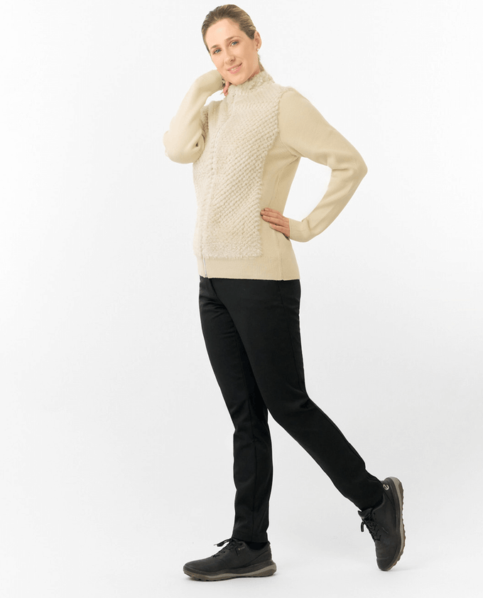 • PURE GOLF Ellisa Knitted Zipped cardigan with faux fur front 508 Limestone